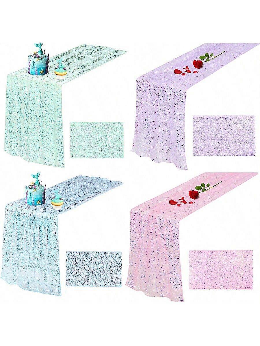 Mermaid Sequin Table Cloth, Rectangle Rainbow Shiny Home Decor Dining Table Runner Sequin Fabric Table Cloth For Party, Bridal Shower, Wedding, Mermai