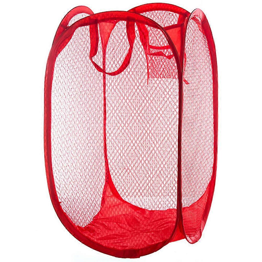 Mesh Construction Laundry Hamper for College Students Red 11.8 11.8 19.7in Foldable Breathable 1Pack