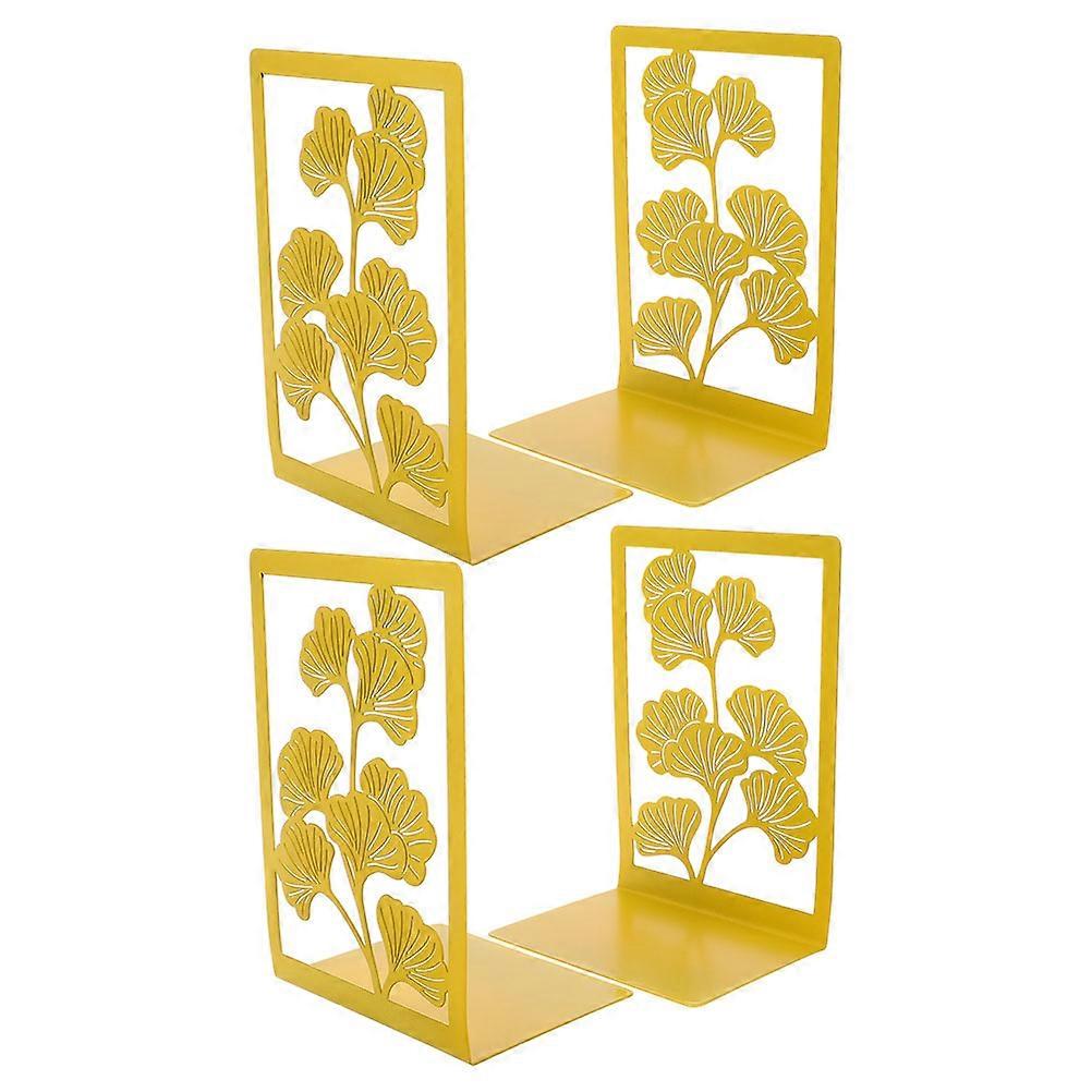 Metal Ginkgo Leaf Bookends Golden Book Ends for Book Use 4Pcs Stable Support