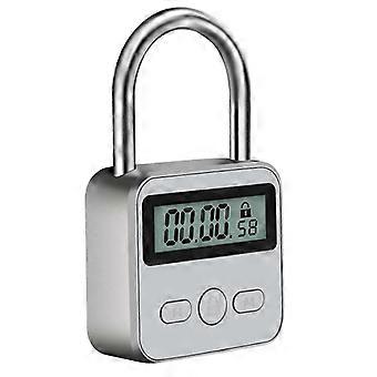 Metal Timer Lock LCD Display Multi-Function Electronic Time 99 Hours Max Timing USB Rechargeable Timer Padlocksilver JP