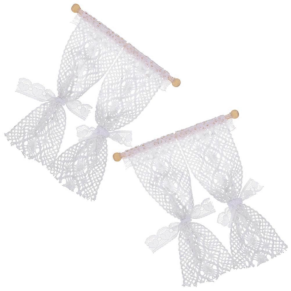 Micro Model Lace Curtain Mini House Window Accessory with 2Pcs for Decor
