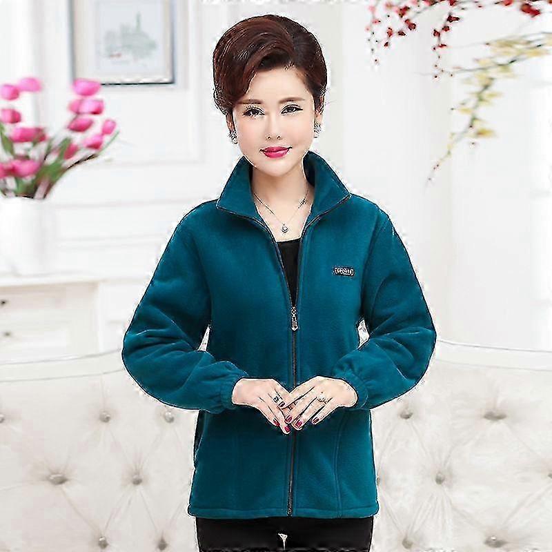 Mid-Age Women's Winter Plus Size Fleece Jacket - Warm, Stand Collar & Zipped for Autumn