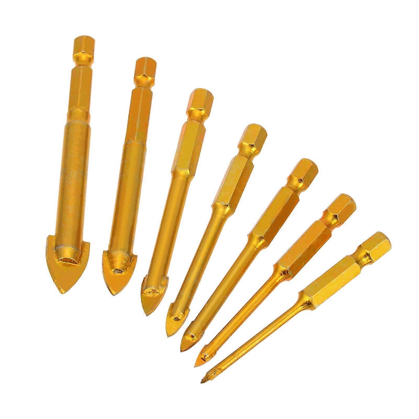 Milling Cutter Bit Set 7-Piece Golden Spear Hexagon 1/4" Shank Drill Bits for Ceramic Tile and Glass 3/4/6/8/10/12mm