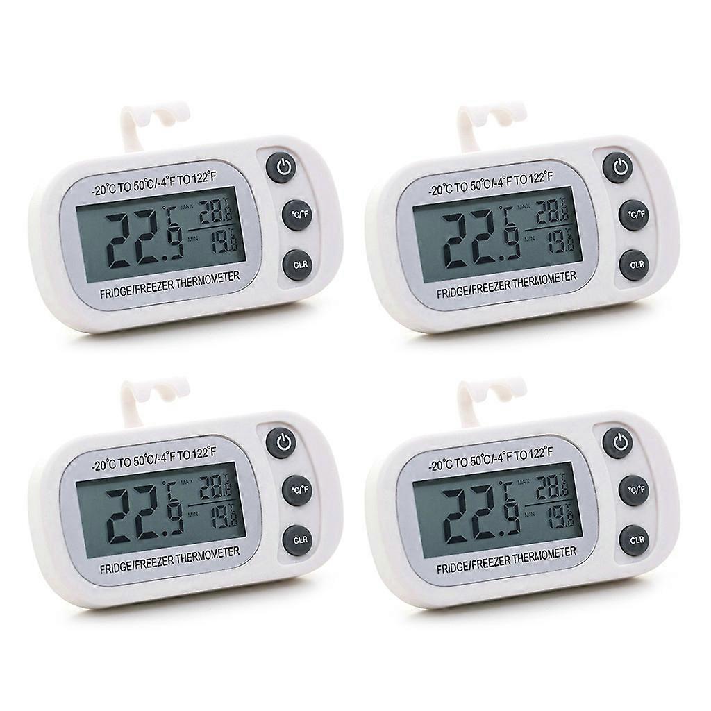 ["4 Pack Digital Refrigerator Freezer Thermometer,Max/Min Record Function with Large LCD Display\n\n\nbrand new and high quality.\nFeatures:\n Measuring temperature range:-20℃~50℃(-4℉~122℉)\nAccuracy:±1℃(±2℉);Resolution:0.1℃(0.2℉)\nMax/Min temperature value display on screen\nStand for shelf or hang with hook,worked with battery(included) \n\nSpecifications:\nMaterial: ABS\nColor: White/Black\nDimensions: app.88*60*24mm\nQuantity: 4 pcs(other accessories demo in the picture is not included)\n\nNote: \nNo retail package.\nPlease allow 0-1cm error due to manual measurement. pls make sure you do not mind before you bid.\nDue to the difference between different monitors, the picture may not reflect the actual color of the item. Thank you!\n\nPackage includes:\n4 x refrigerator thermometer"]