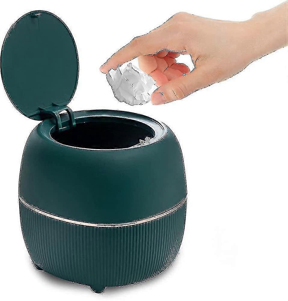 Mini Desktop Trash Can, Round-pressed Trash Can With Lid, Small Plastic Trash, Desktop Trash Can, Creative Light Luxury Trash Can, Household Mini Tras