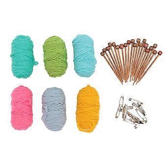 Mini Knitting Tools Set Single Pointed Knitting Needles and 6 Colors Knitting Yarns and Knitting Sti