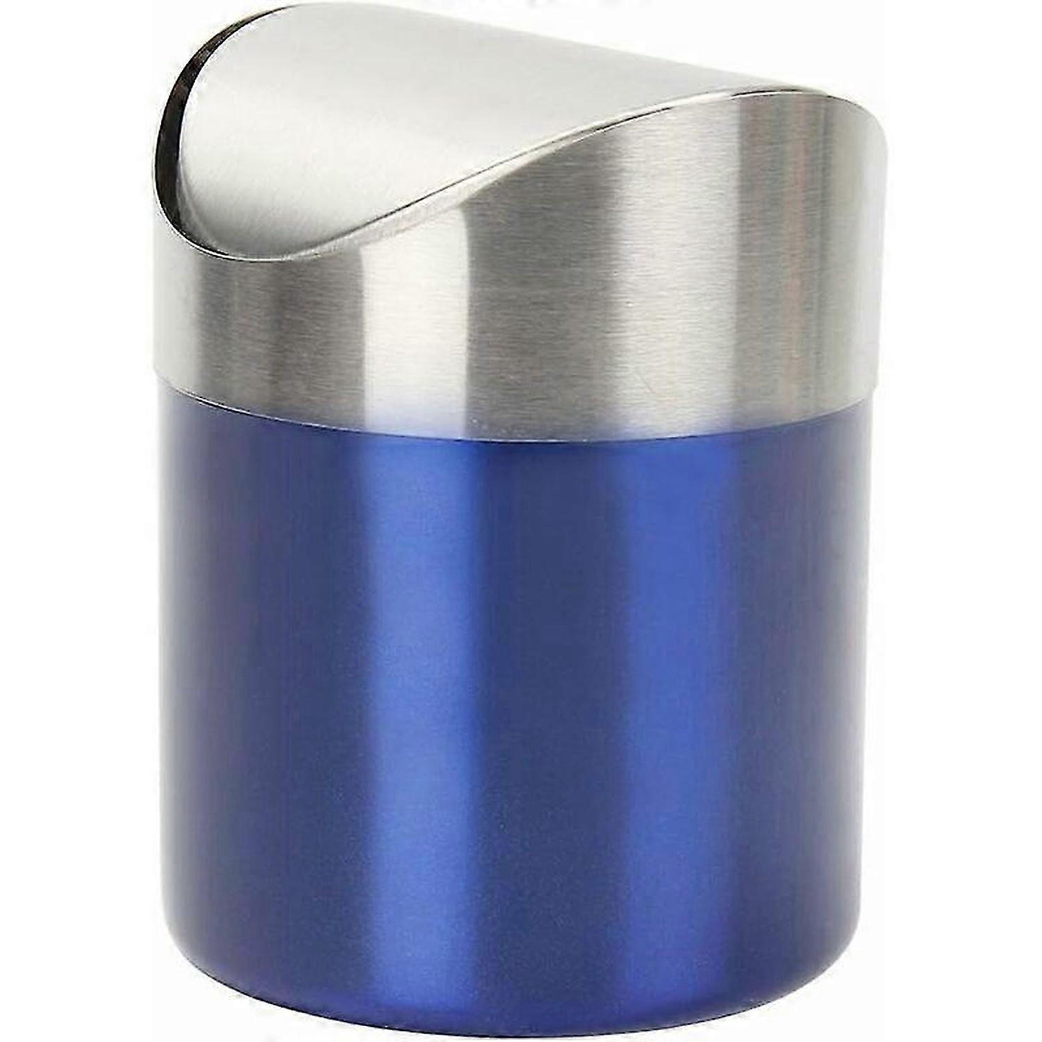 Mini Stainless Steel Trash Can with Swing Lid Practical for Office Table Car Bedroom (Blue)