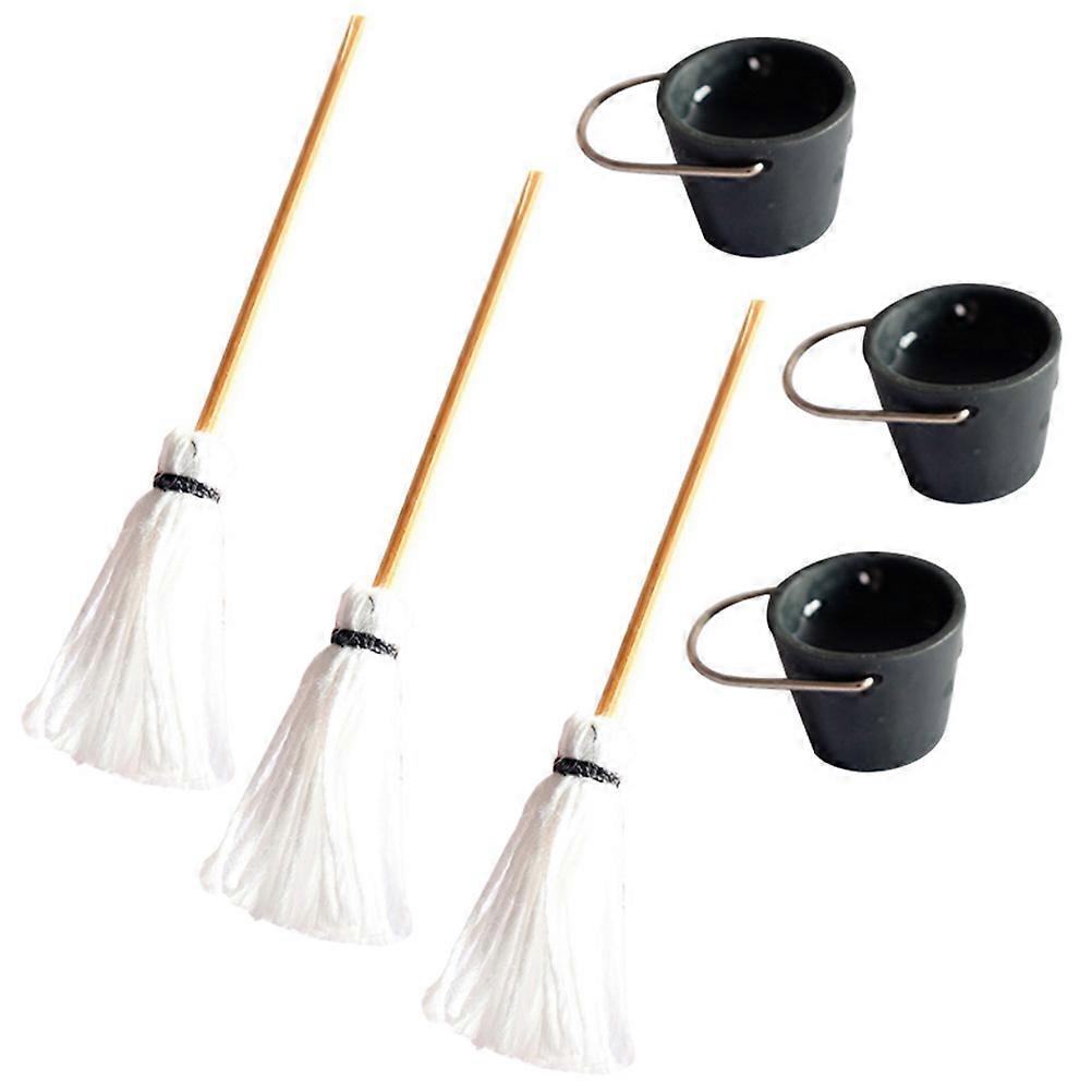 Miniature Cleaning Tools Set for Dollhouse Decoration and Diy Crafts Assorted Color Resin and Iron Material with Cleaning 3 Sets