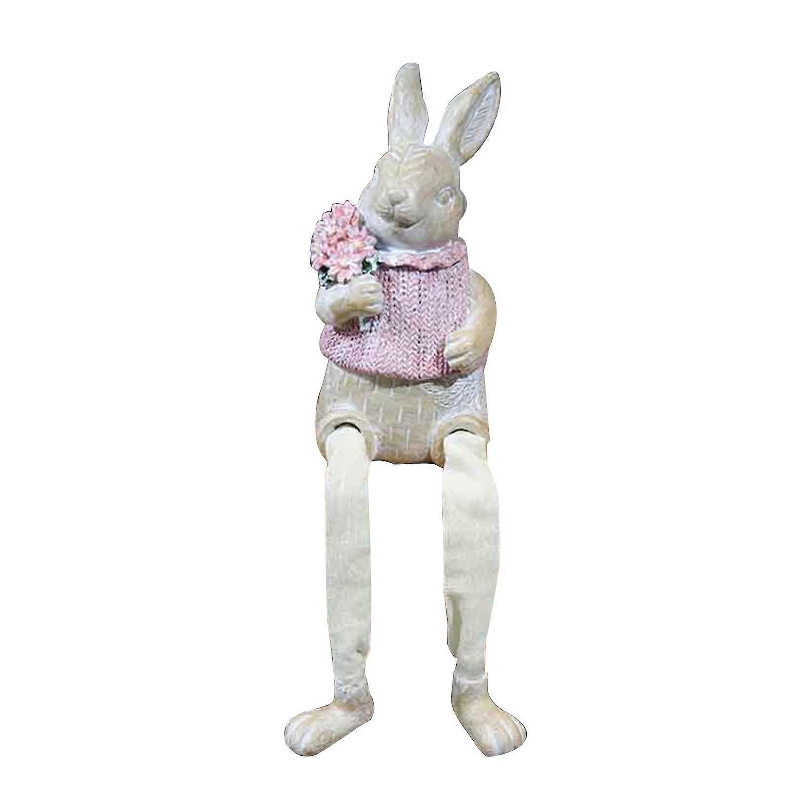 Miniature Easter Rabbit Bunny Figurine Mini Resin Carved Pattern Crafts Pink