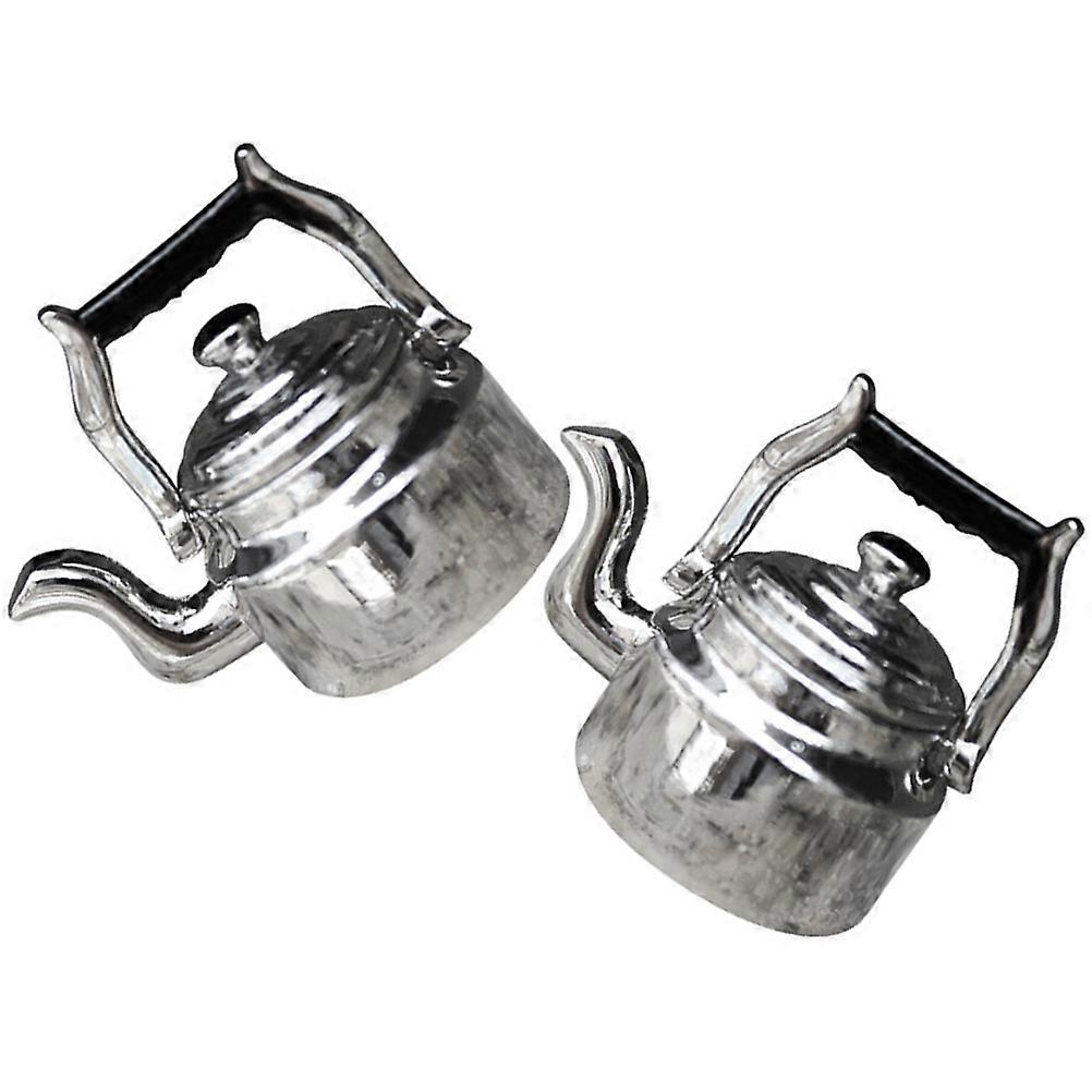 Miniature Silver Alloy Water Kettle for DIY Use with Realistic Design and Smooth Finish 2Pcs