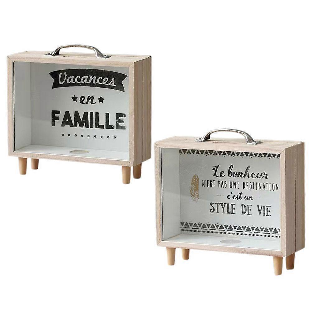 Money Saving Box 2Pcs Assorted Color Wooden Piggy Bank with Versatile Use for Storage