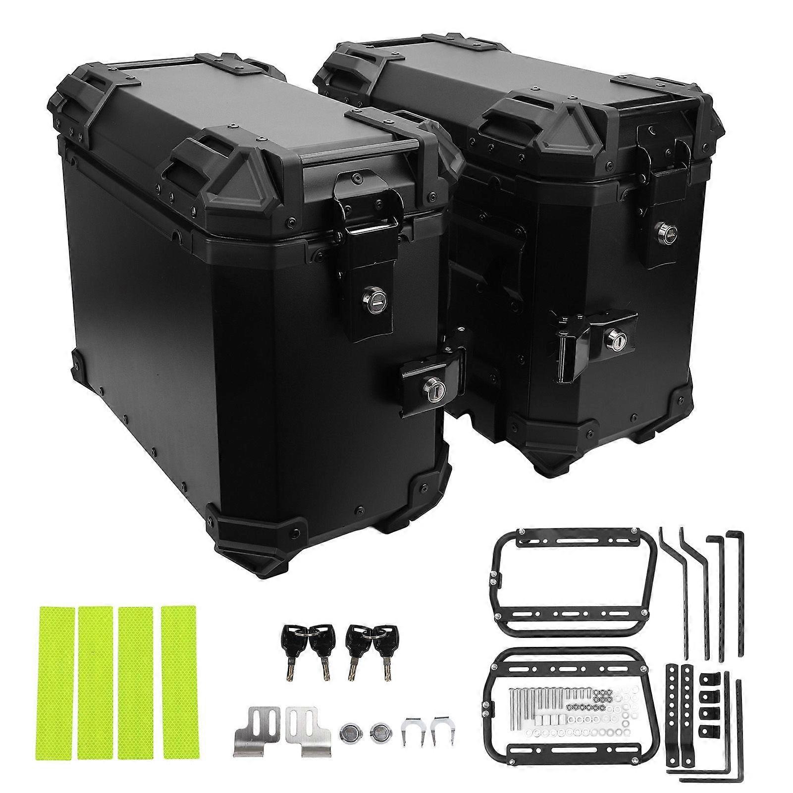 Motorcycle Side Case Universal Fit Aluminum Alloy 35L Hardshell Saddlebag Box with Support Bracket Lock Handle for Helmet Luggage