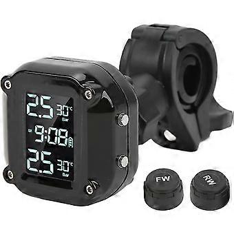 Motorcycle Tire Pressure Monitoring System, Waterproof Magnetic Rechargeable Tpms With 2 External Sensors, Lcd Display Motorbike Tyre Alarm Tire Press