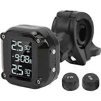 Motorcycle Tire Pressure Monitoring System, Waterproof Magnetic Rechargeable TPMS with 2 External Sensors, LCD Display Motorbike Tyre Alarm Tire Press