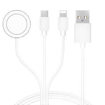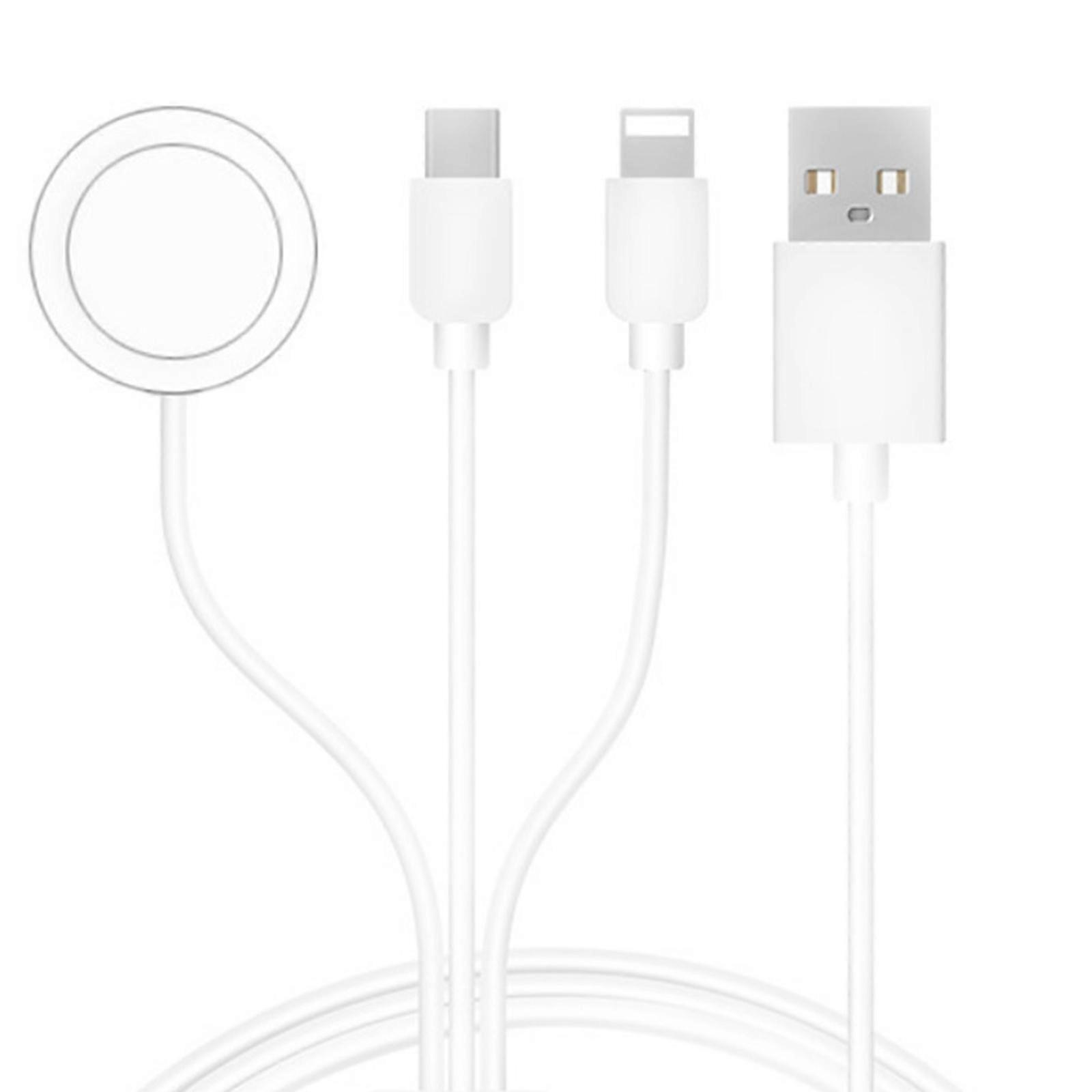Features: 3 in 1 Portable Design:Updated 3 in 1 design,buy one get three chargers. 3ft/1m ios watch charger cable is convenient for office/home/travel/drive. Has type-c charging port compatible most for smart phones and tablets, making it a for ideal portable choice to everywhere. Supports charging 3 devices at the same for time, so that you can easily share with friends or family. It delivers stable and safe charging while keeping your watch at the right angle so you don’for t have to keep readjusting it. Our phone and wireless watch charger can easily be carried in your purse, backpack, luggage, etc. to accompany you anywhere you go. Specifications: Material:ABS,Metal Input:DC5V 1A Output:2W Length:Approx.100cm/39.37'' Net Weight:50g Package Includes: 1x 3 in 1 Charger note: Please allow 1mm errors due to manual measurement. Due to the difference between different monitors, the picture may not reflect the actual color of the item.
