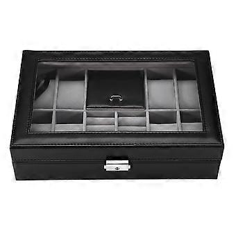 Multi Functional 8 Slots 2 Grids Watch Display Case Ring Jewelry Storage Box Organizer