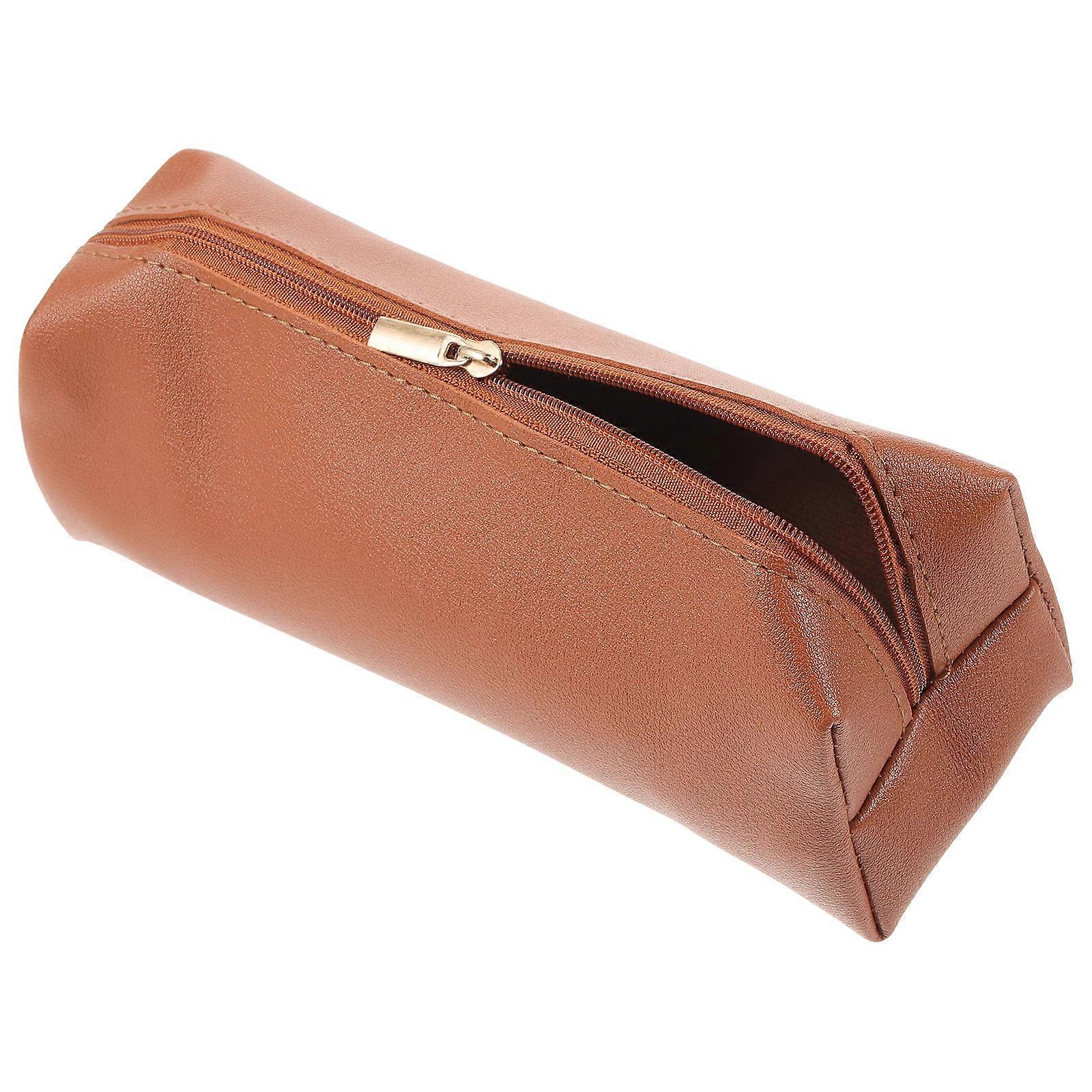 Multi-Functional Pencil Pouch For Men And Women With Rectangular Shape In Light Brown For Travel Storage 1Pack