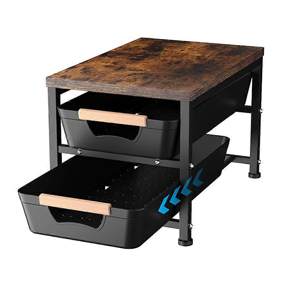 Multifunctional Wood Board Storage Rack with 2 Tiers Sliding Drawer Desktop Organizer Shelf, Size M