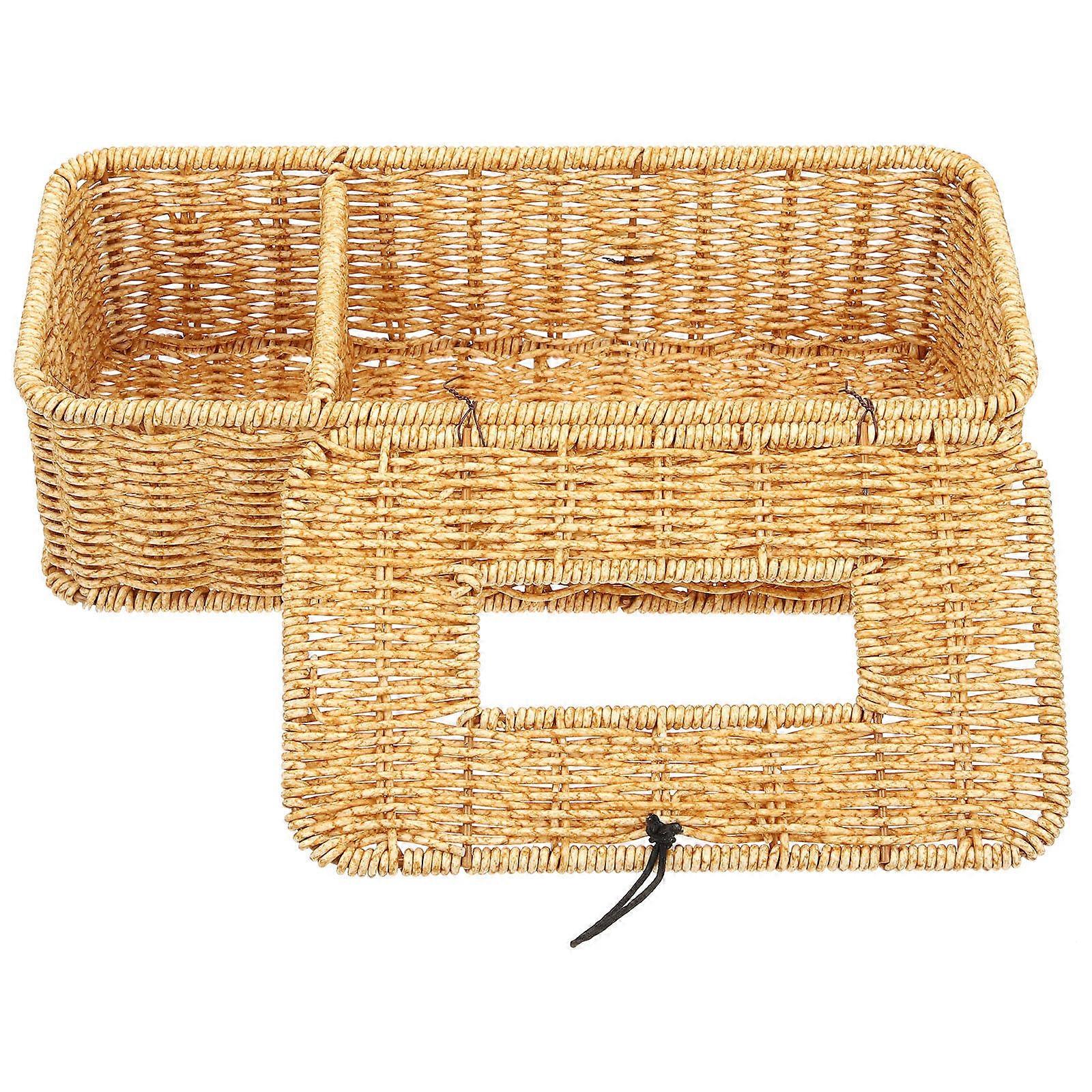 Multifunctional Woven Tissue Box Holder with Compartment Design for Home Storage and Easy Access Decorative Paper Towel Organizer
