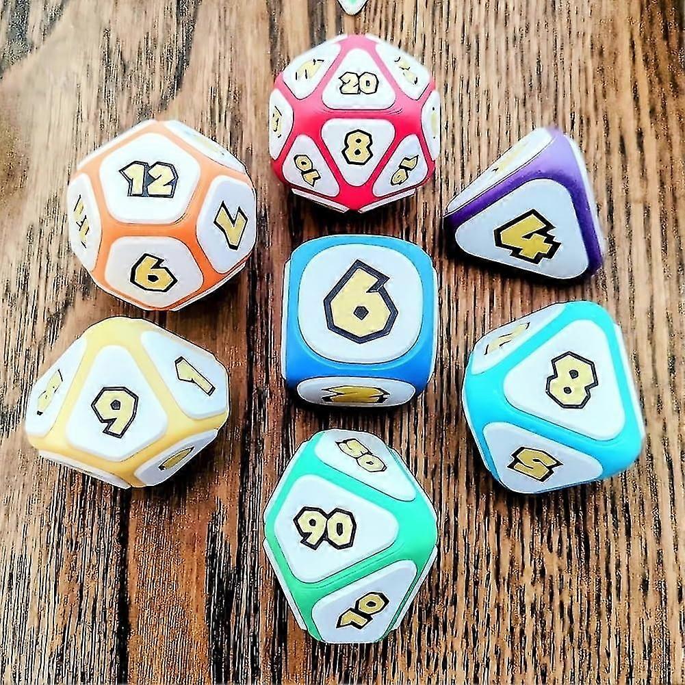 Mushroom Party Tabletop Role-Playing Game DiceEnjoy a complete set of 7 uniquely designed dice, including D4, D6, D8, D10, D10 percentile, D12, and D20. Embrace the charm of the universe with vibrant, colorful dice. Easy to Read Dice SetsThe numbers in easy-to-read font stand out clearly against the background, so you can focus more on your games. Number 6's and 9's are clearly marked,no visual trouble. DND Dice for RPGs and CollectingPerfect for TTRPG games such as Dungeons & Dragons A must havefor beginner-level dice collectors. Well Balanced DiceUsing precise dice mold production to ensure the balance and practicality of the dice. Perfect GiftMakes a Great Gift for a Friend/Father/Siblings, Fellow Player, or Dungeon Master. These Are Super Unique Whether it is a gift or a collection is an excellent choice.