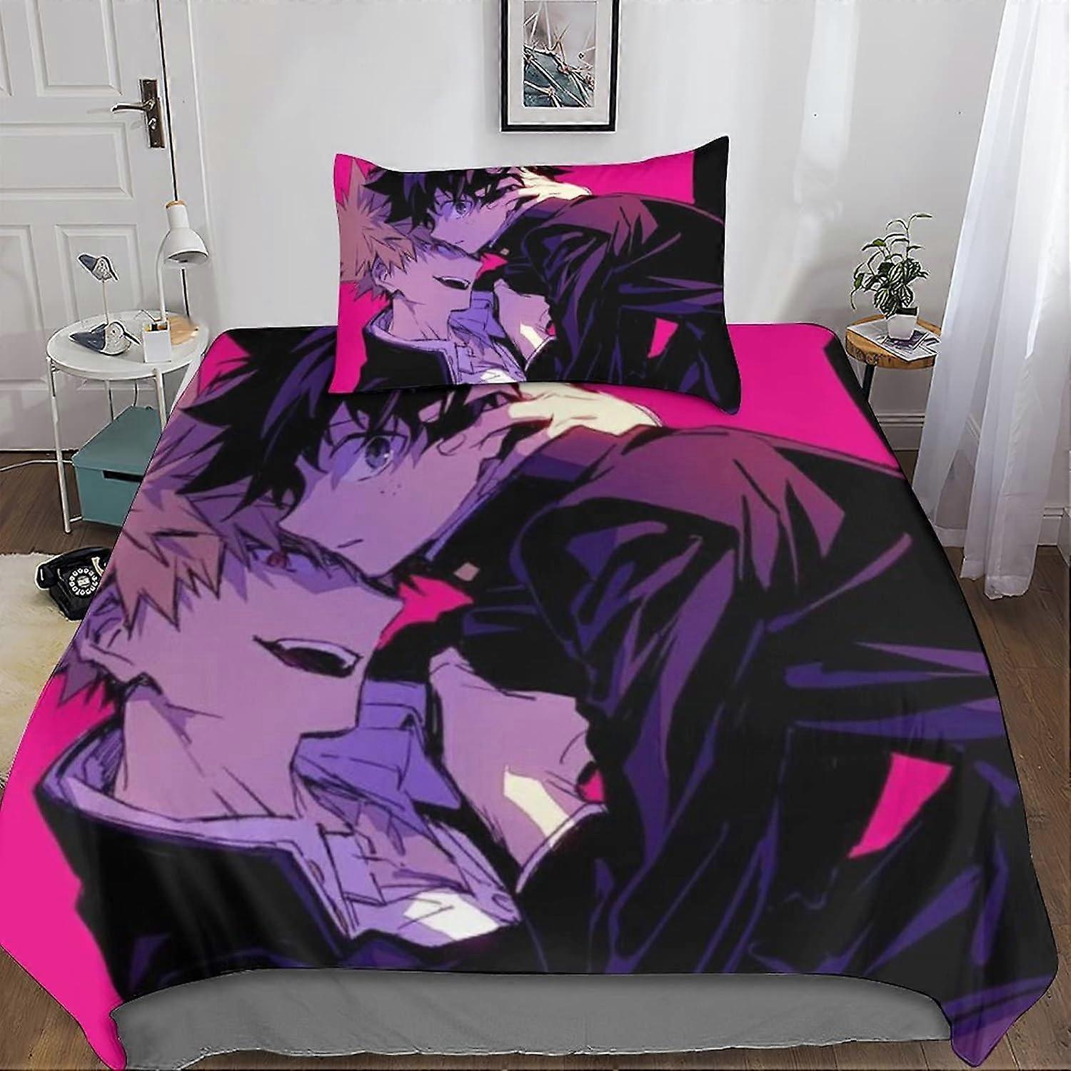 My Hero Academy Pattern Duvet Cover Set with Pillowcases,D Printed My Hero Academia Microfiber Bedding Sets for Adults Kids T 135*200 CM