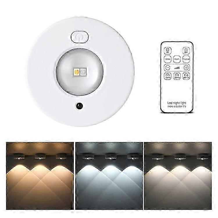 MZ-L3301 1Pc Three Colors Round LED Cabinet Light Magnetic Wardrobe Lamp with Remote Control