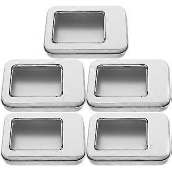 Nail Storage Box Metal Tin Case for Organizing 5Pcs with Clear Window Lids