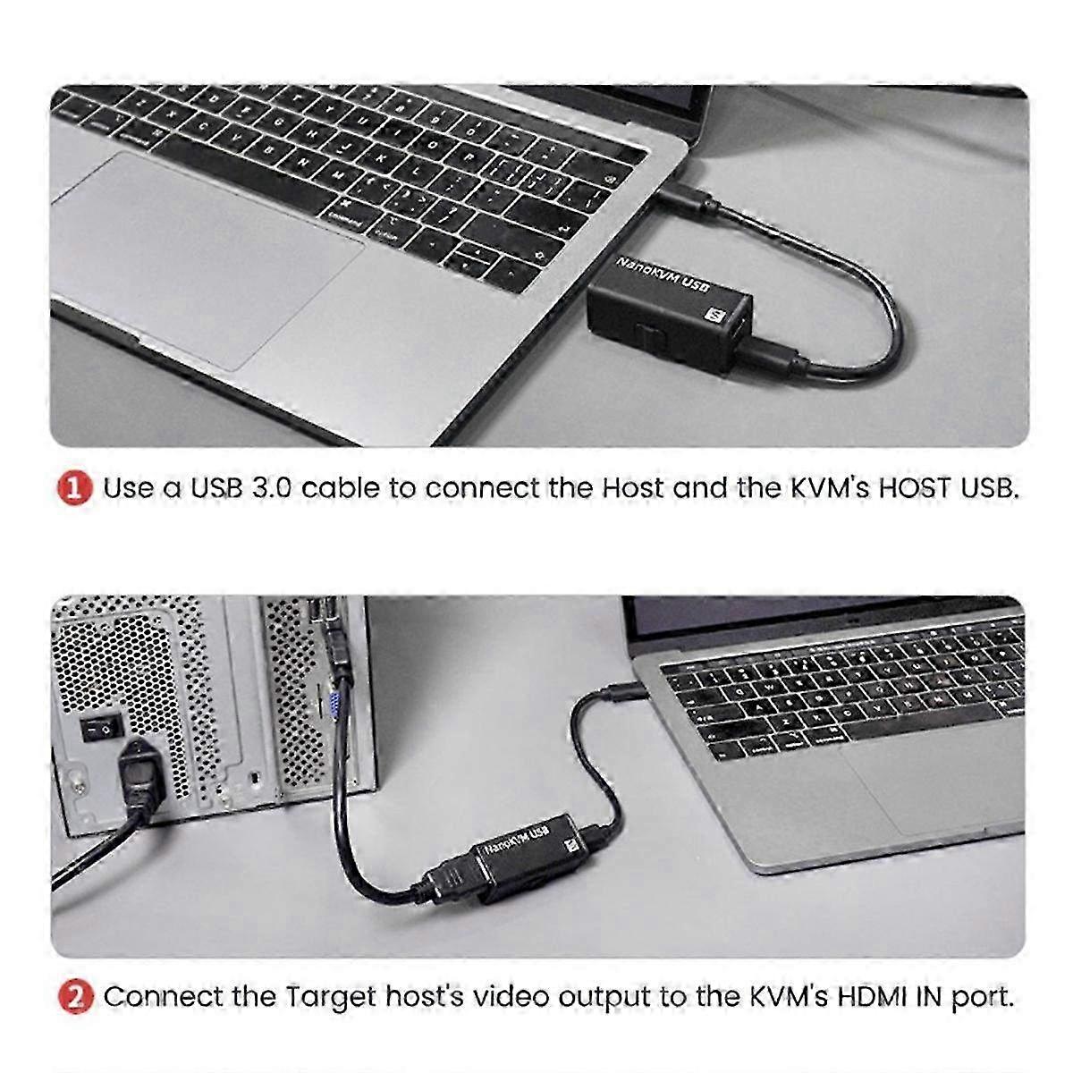 The NanoKVM-USB is a convenient tool for operations and multi-device collaboration.it allows you to per-form maintenance tasks without the need for a key-board, mouse, or monitor. Using just a single computer and no additional software downloads, you can start graphical operations directly through the Chrome browser. NanoKVM-UsB captures HDMl-Compatible video signals and transmits them to the host via UsB 3.0. Unlike typica! USB capture cards, NanoKVM-USB also captures key-board and mouse input from the host and sends it to the target machine in real-time, eliminating the need for traditional screen and peripheral connections. also supports HDMl-Compatible loop out, with a maximum resolu-tion of 4K 30Hz, making it easy to connect to a large display. Notably,NanoKVM-USB comes with a USB-A port that supports switching between HOST and TARGET sides When a USB drive is connected,data can be easily transferred between two computers. Additional fea-tures can be explored freely. Specification:B:NanoKVM-USB Note:Due to different production batches, the printing silk screen/appearance is different, which does not affect the use. Colour:Random Color(color random, do not accept specified) Material:aluminum alloy Package Contents: 1 x NanoKVM-USB Only the above package content, other products are not included. Note: Light reflection and different displays may cause the color of the item in the picture a little different from the real thing. The measurement allowed error is 1-3cm.