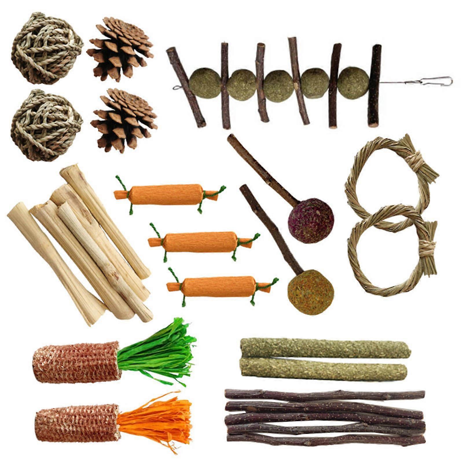 Natural Wood Chew Toy Set Hamsters Rabbits Exercise Toy Interactively Pet Toy for Hamsters, Chinchillas Multicolor