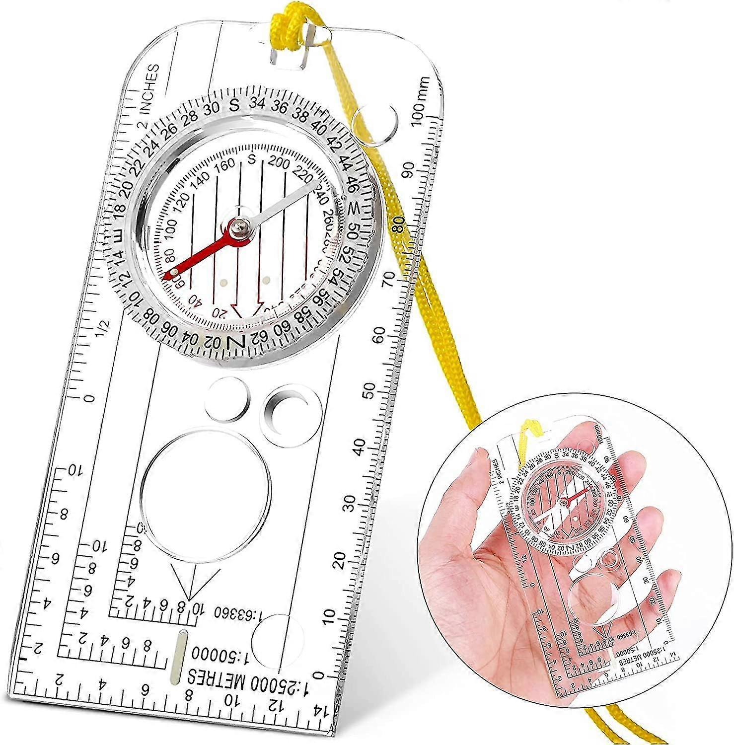 Durable to use, the navigation compass is made of quality acrylic material, which is sturdy and firm, not easy to wear and tear, durable for long time use, convenient to use, you can take the compass hiking when you travel.Compass Lanyard hole on the base plate for easy carrying (lanyard included) Compass Suitable for most indoor compass hiking activities like house maintenance and outdoor activities like hiking cing, map reading, fishing, hiking, night fishing, night flying, hiking Suitable size, the size of the navigation compass is approx. 11.5 x 5.5 / 4.5 x 2.17 inch, lightweight and suitable size for you to store and carry outdoors, taking up less space and lightening your travel Bright design, designed with luminous marks,With the special fluorescent light design, you can use it and read data on it in the dark environment after absorbing enough sunlight.the moving direction arrow, the index line and the magnetic needle (N) of the explorer compass make you more convenient to apply even at night or under the dark light, providing you with timely guidance Made of durable plastic that can work in extreme weather conditions. Inch and millimeter scales for mapping or plotting. Protractor compass for measuring direction, which is portable and convenient for you to hang the navigation compass on your backpack, suitcase, vehicle, etc., you can also hang it around your neck to free your hands