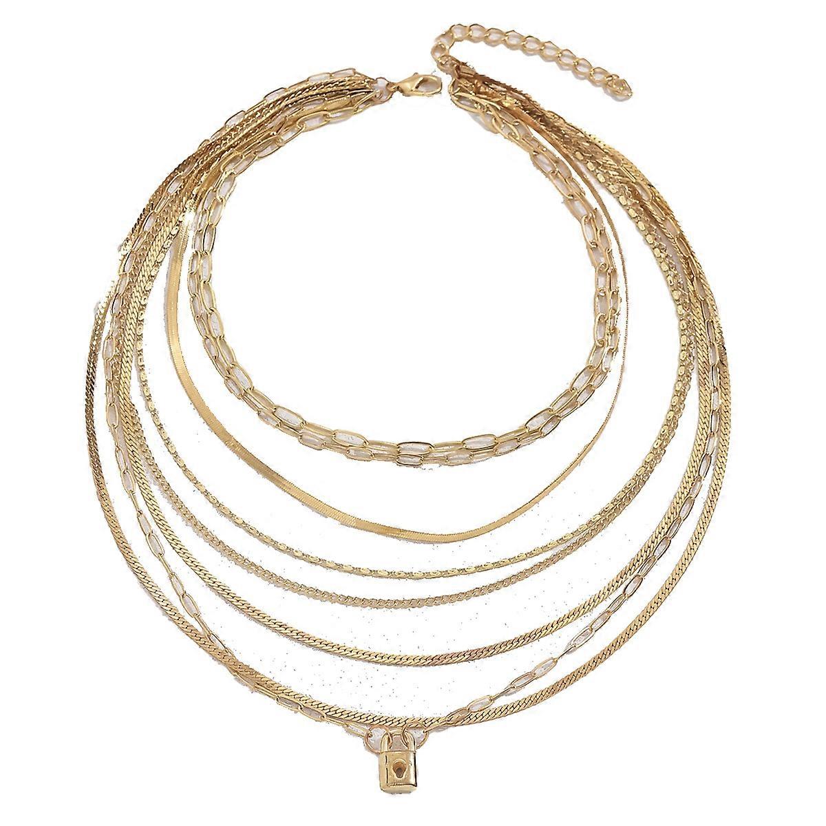 Necklace, Women's Multi-layer Collarbone Chain with Fashionable Lock Design Long Chain Hip-hop Style