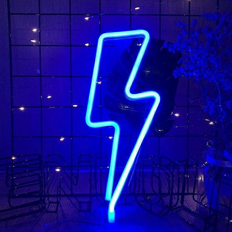 Neon LED Modeling Lamp Decoration Night Light, Style: Blue Thunder 1. Application: indoor and outdoor use, with hanging holes, can be hung on the wall or wherever you want 2. Indoor use, home, shop window, club, party and holiday decoration. 3. Power supply: battery box (3 x AA batteries, not included), or USB plug-in use 4. Material: neon tube + plastic frame 5. Input voltage: 5 (V)