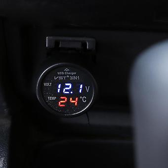 New 3 In 1 Digital Led Voltmeter Thermometer Auto Car Usb Charger 12v/24v