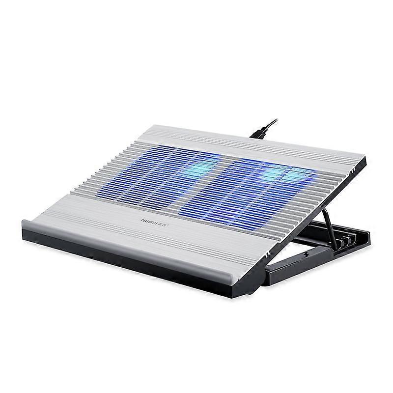 NUOXI T10 Laptop Radiator Multi-File Adjustment Aluminum Alloy Bracket 1. Material: aluminum alloy, plastic 2. Air volume: 74.35CFM 3. Fan speed: 1200±10%RPM 4. Noise: 21 DBA 5. Voltage: (USB) DC 5V 6. Product size: 36 x 26 x 3cm 7. Fan size: 14 x 14 x 1.5 cm (2 pcs) 8. Weight: 1.111 kg 9. Adopt VAD vertical turbulence design to optimize the air intake 10. Use 0.5mm thick aluminum panel, turbo dual fan, higher heat dissipation performance 11. The air volume can be adjusted, and the heat dissipation is stronger 12. Thick non-slip silicone to prevent the notebook from slipping off 13. Thickened panel, strong heat dissipation, sturdy and durable
