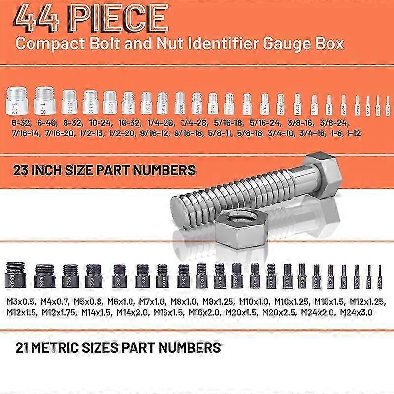 Nut and Bolt Thread Check-Standard & Metric -44Pcs Male/Female Gaugessilver black SZRH A-F