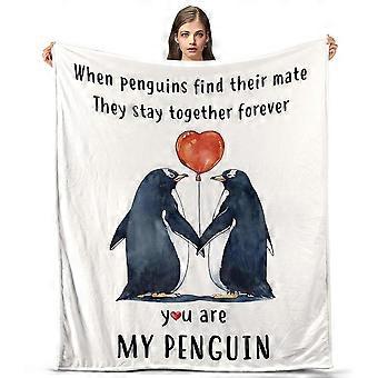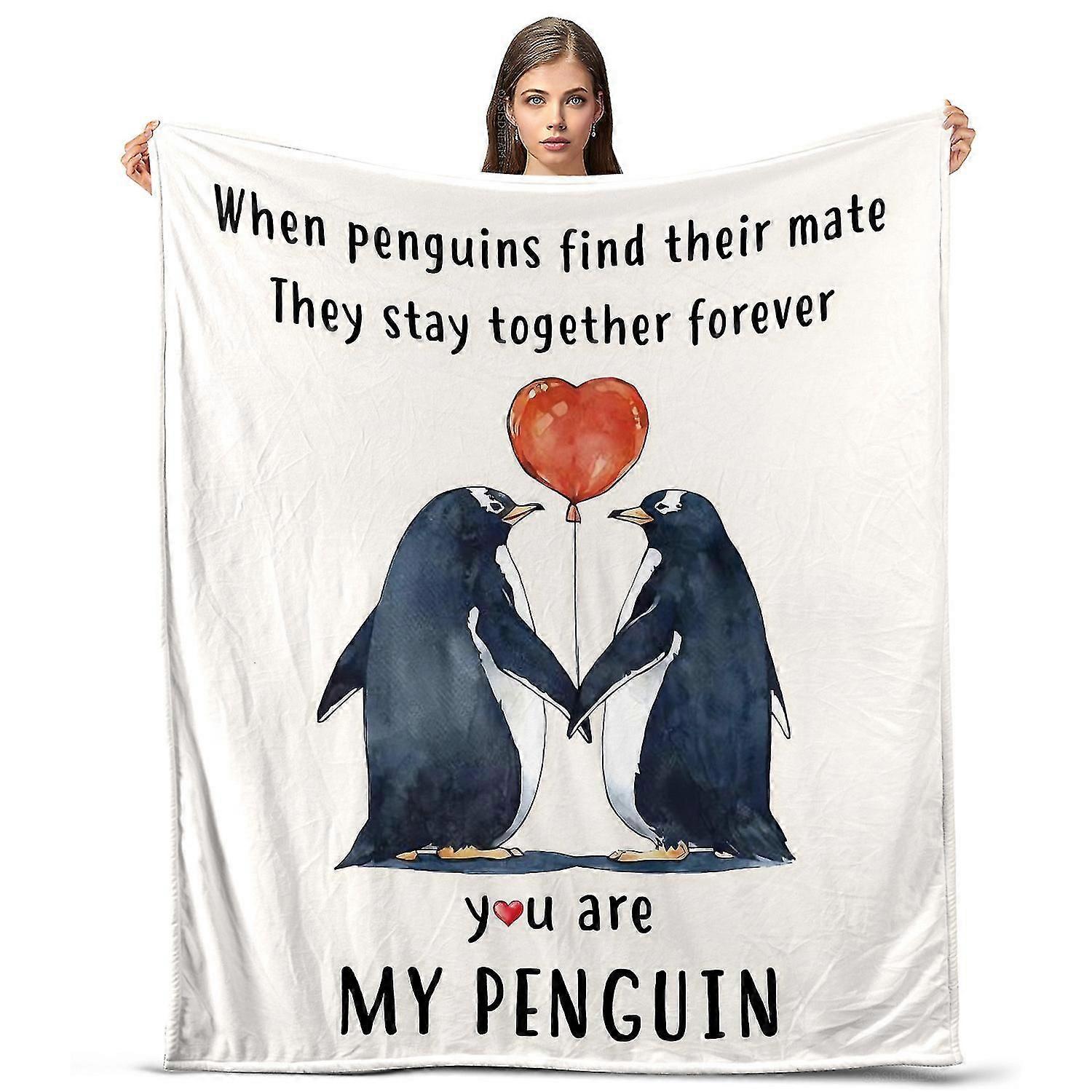 Oasisdream Lightweight and Smooth Blanket with A Balloon and Two Penguins Together Print
