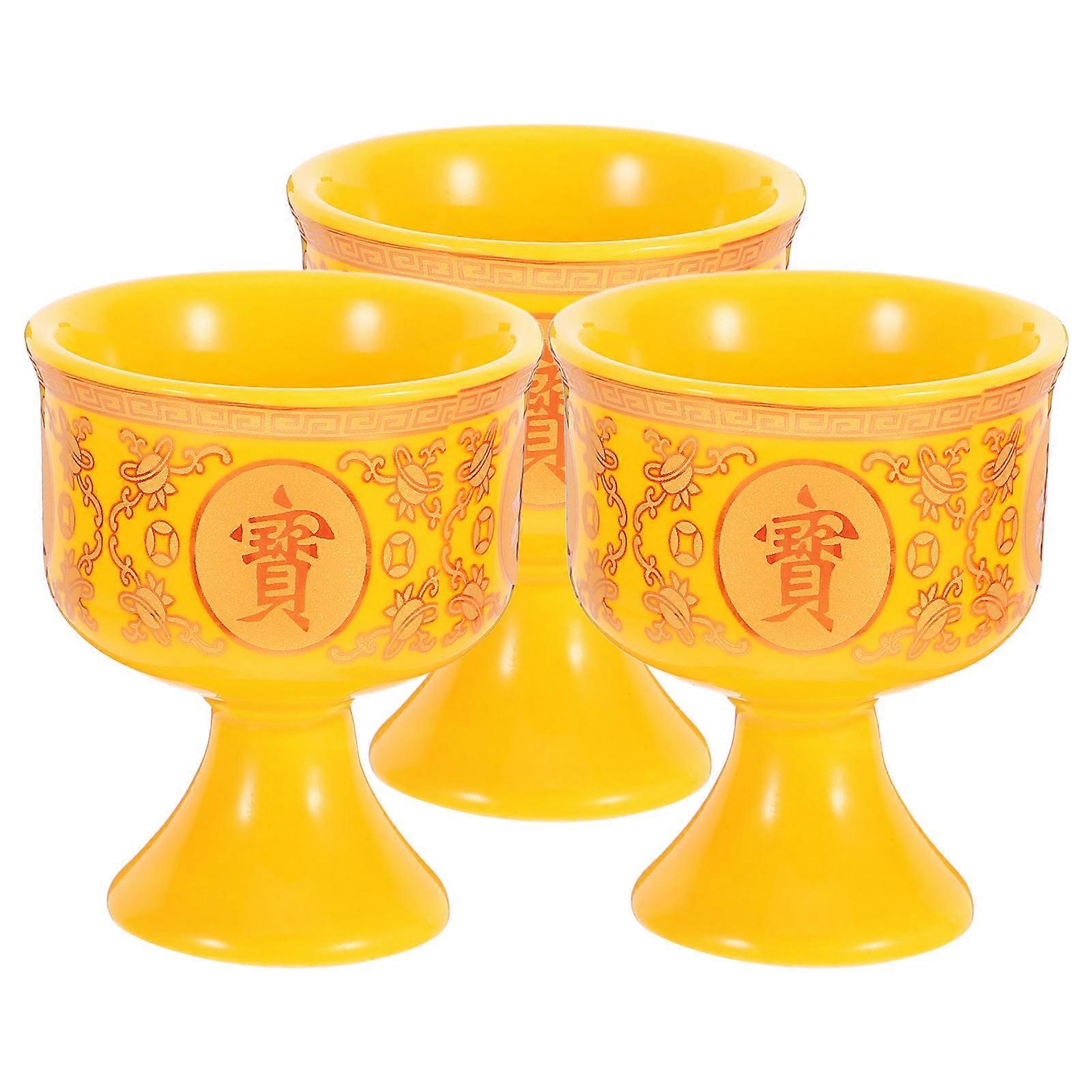 Offering Cup Set For Worship Meditation Featuring Golden Ceramic Design For Buddhists And Home Use In 15 Pcs