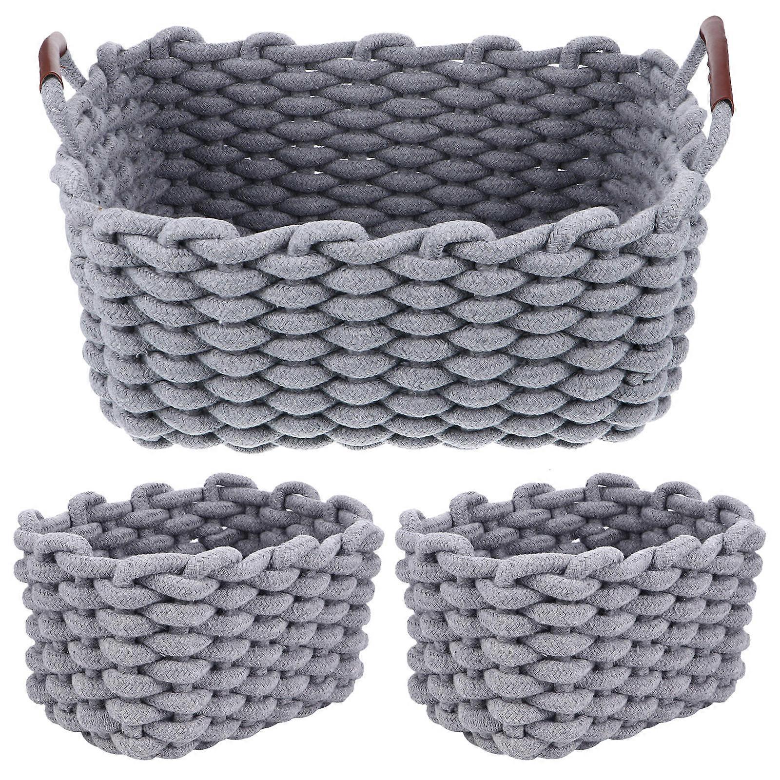 Organizer Baskets Simple Design Home Use Gift Giving Square Shape Material 3Set