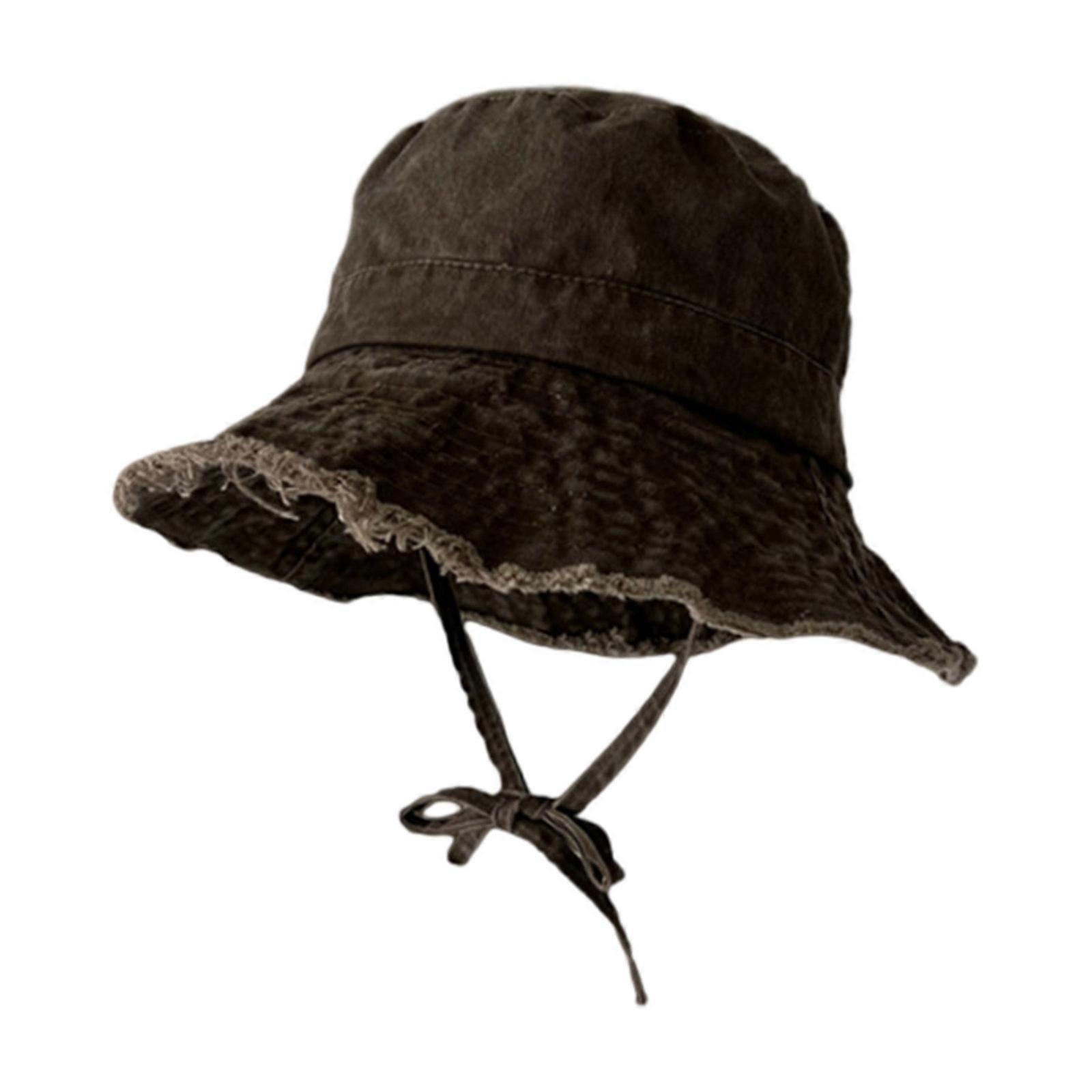 Outdoor Bucket Hat Multiple Color Can Choose Frayed Edge Design Bucket Hat Summer Sunproof Fisherman Cap for Adult Brown