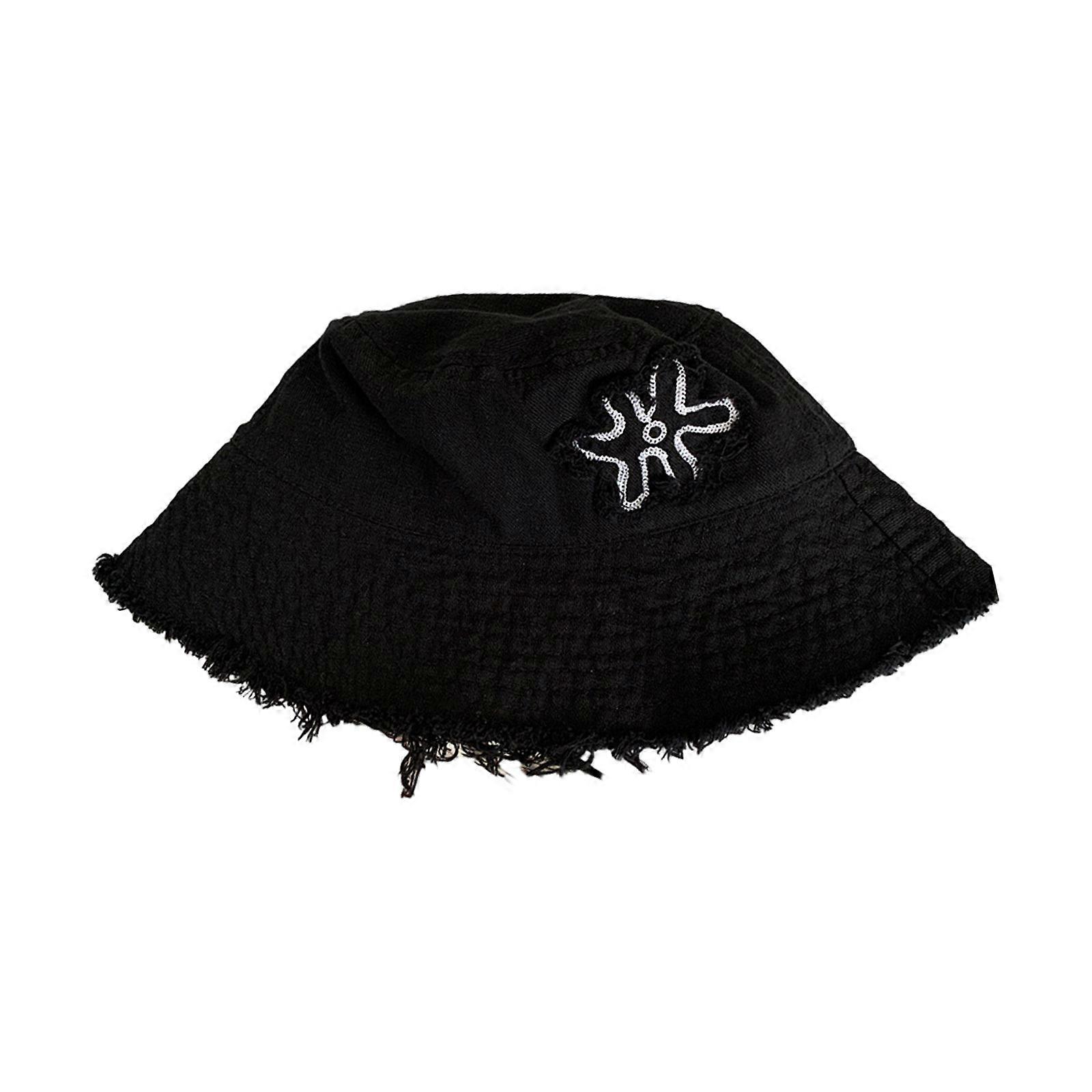 Adult Distressed Bucket Hat Cute Ladies Outdoor Sports Fisherman Cap for Women Teenagers Casual Summer Sunscreen Hat Black