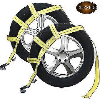 Over-the-Wheel Tire Tie Down Straps with Flat Hook & Net for Dolly Baskets, Small to Medium Tires