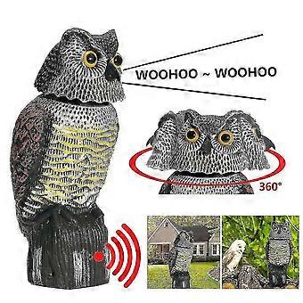 Owl Scarecrow with Realistic Sounds & Rotating Head for Pest Control