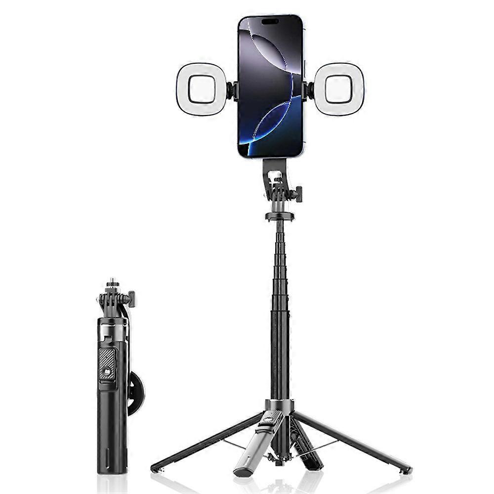 P135 Handheld Phone Selfie Stick Anti-Shake Magnetic Extendable Four-Legged Bracket with 2 Fill Lights