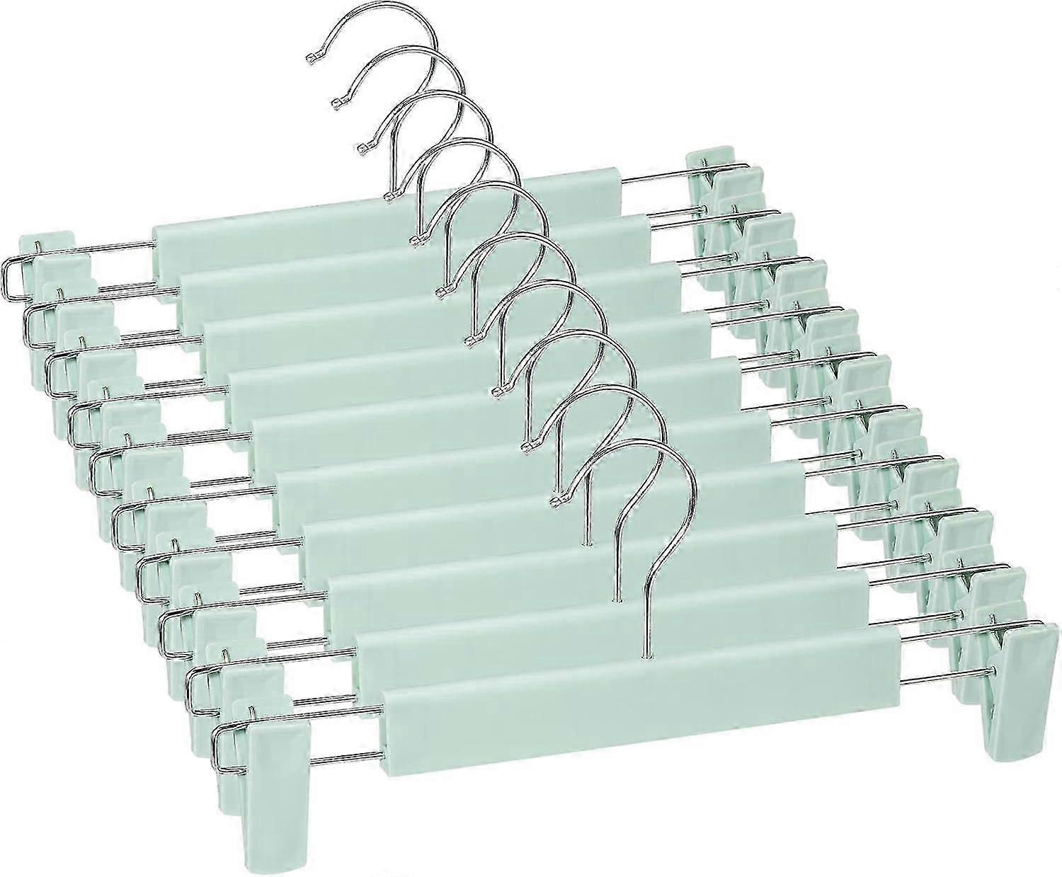 Pack of 10 Clothes Hangers with Strong Non-Slip Adjustable Clips Hooks, Space-Saving Trouser Hangers Mint Green