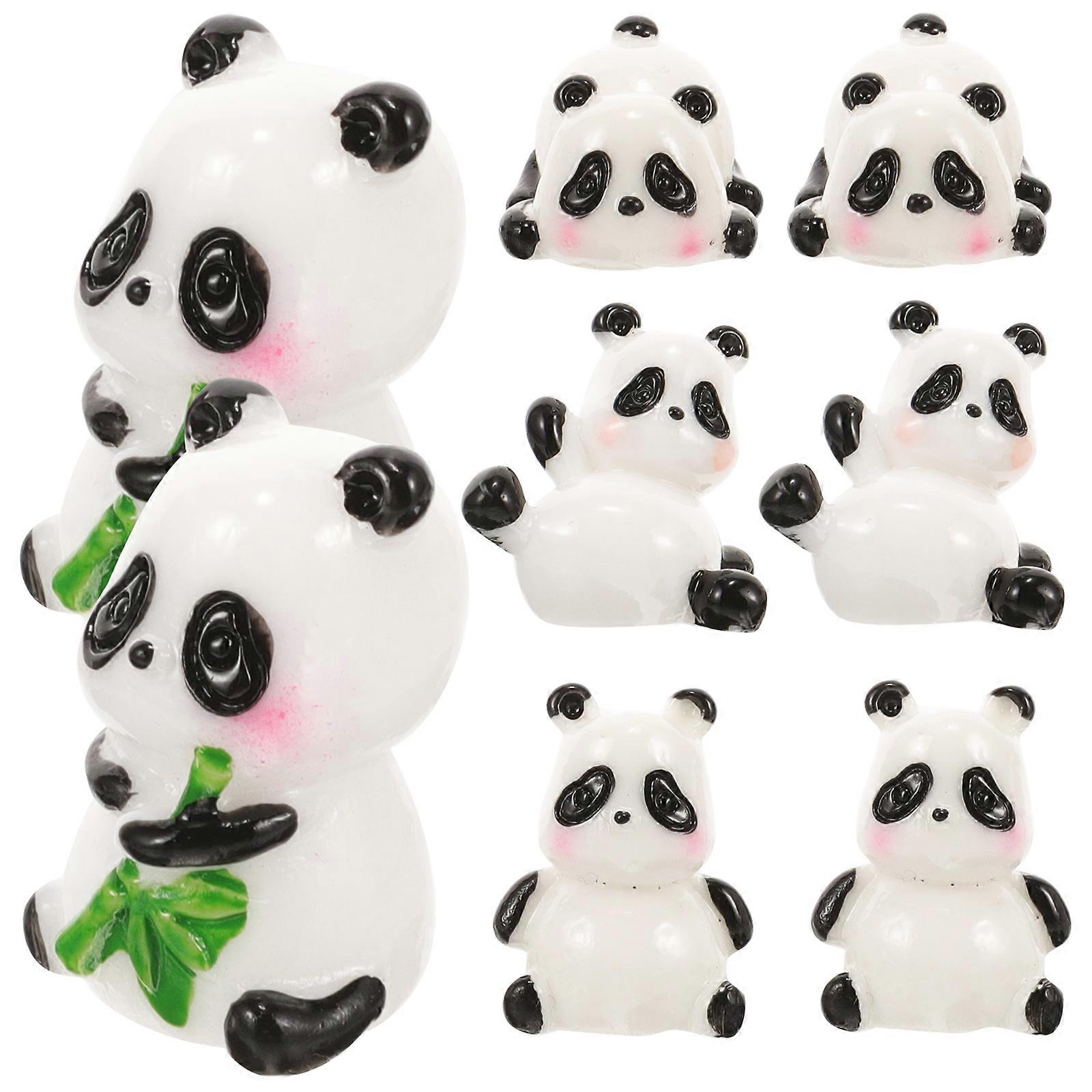Panda Cake Decorations 8Pcs Assorted Color Lifelike Resin Pandas Desktop Decor
