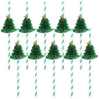 Paper Drinking Straws 30 Pcs Classical Christmas Tree Design Perfect For Daily Use Picnics Parties Green