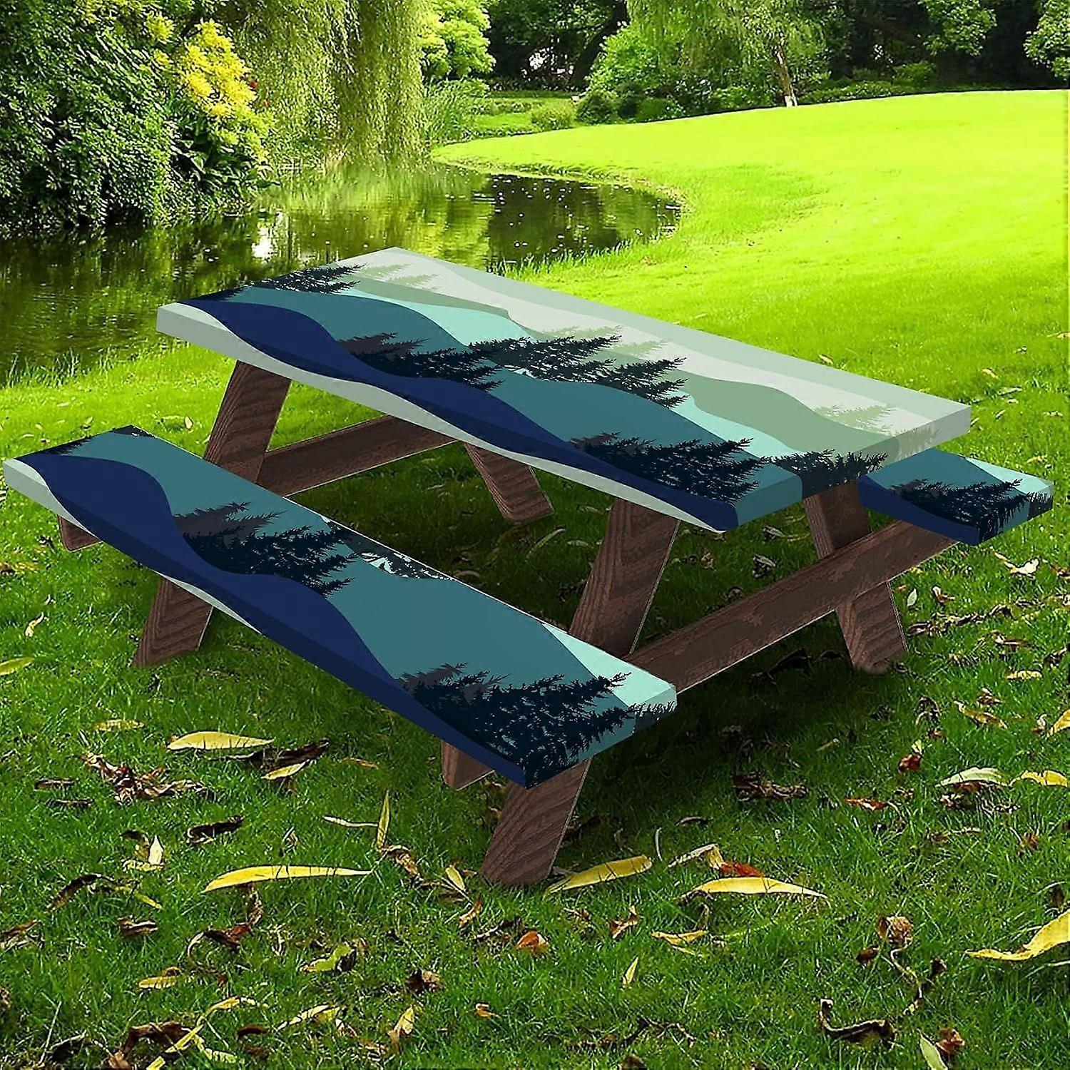 Patio Table and Bench Fitted Tablecloth Cover, Rectangle Picnic Table Cover with