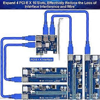 PCIE 1 to 4 Adapter Riser Card, PCIE Splitter 1 to 4 Riser Card, PCIE 1X to 4X, 4 in 1 PCI-E Riser