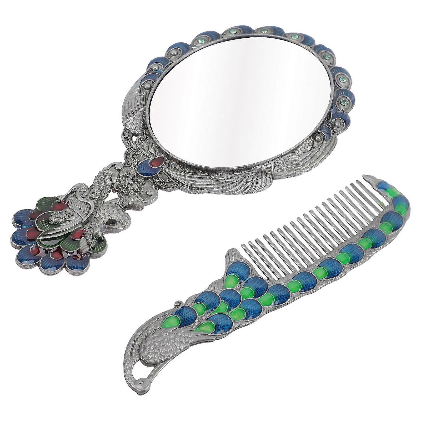 Peacock Design Portable Vanity Mirror with Lights for Outdoor Use Assorted Color 1 Set