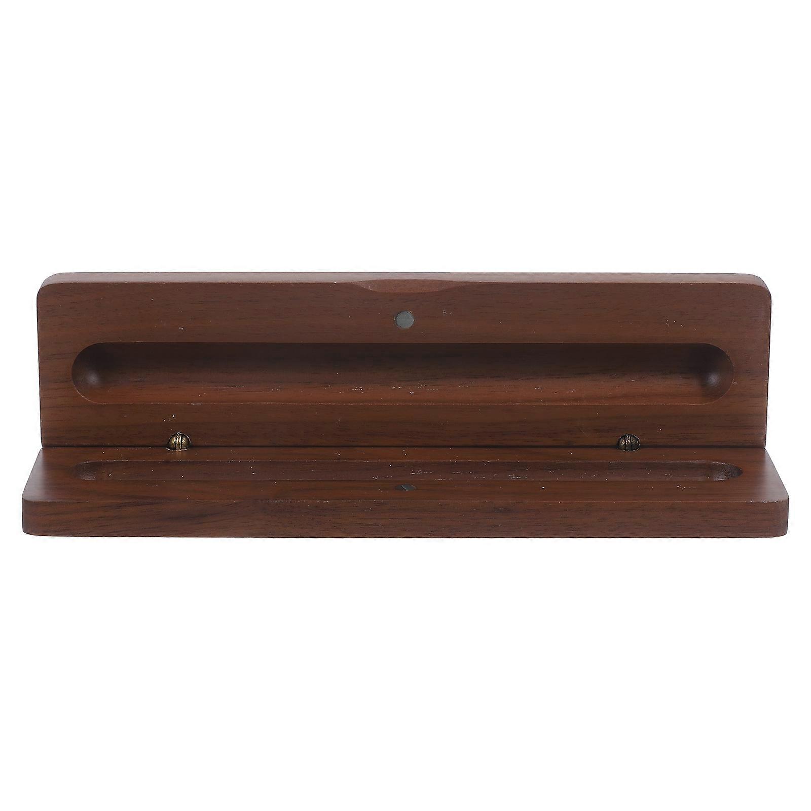 Pen Display Box Walnut Wood Clamshell Shape For Travel Home Use 18X5X2CM Black 1Set